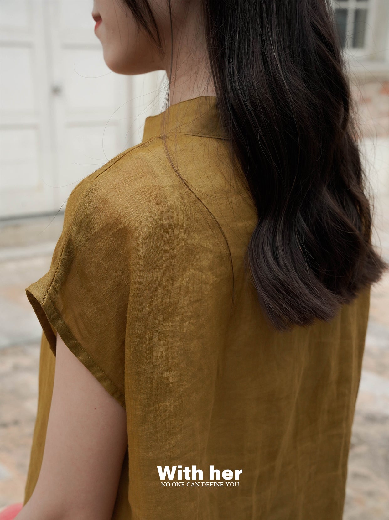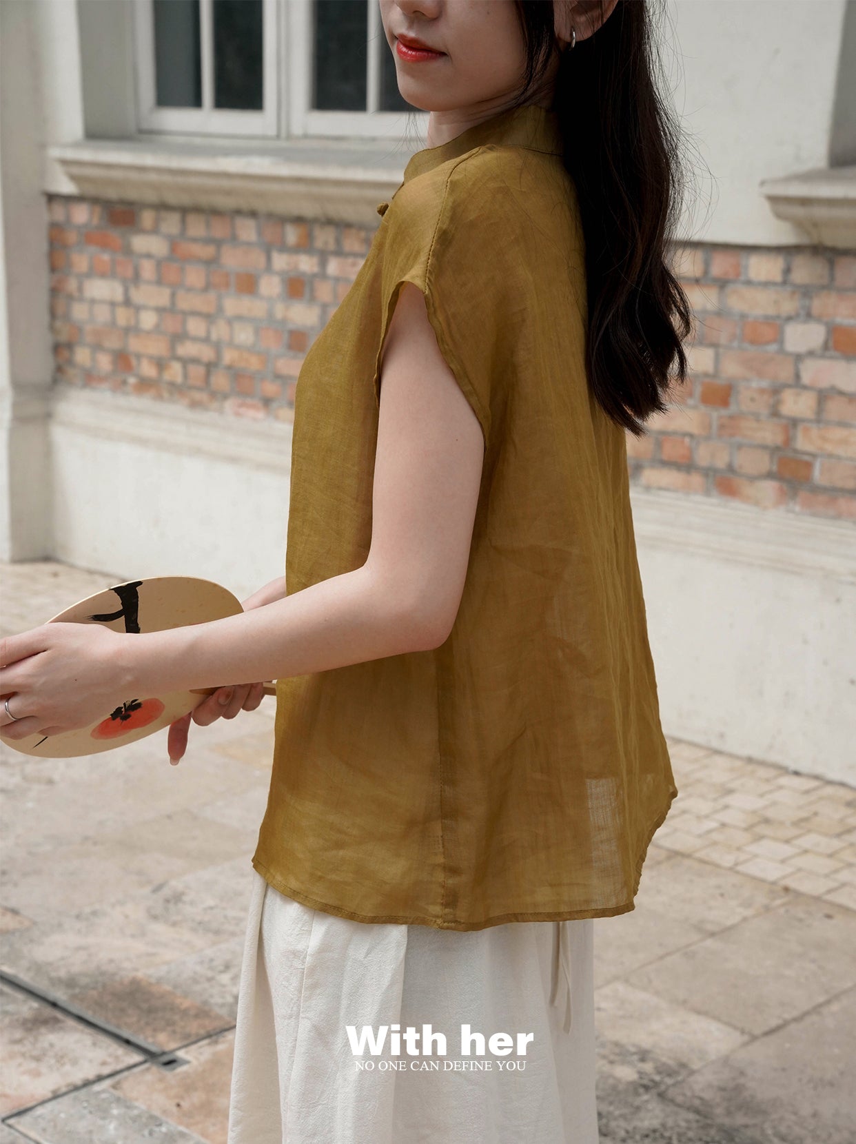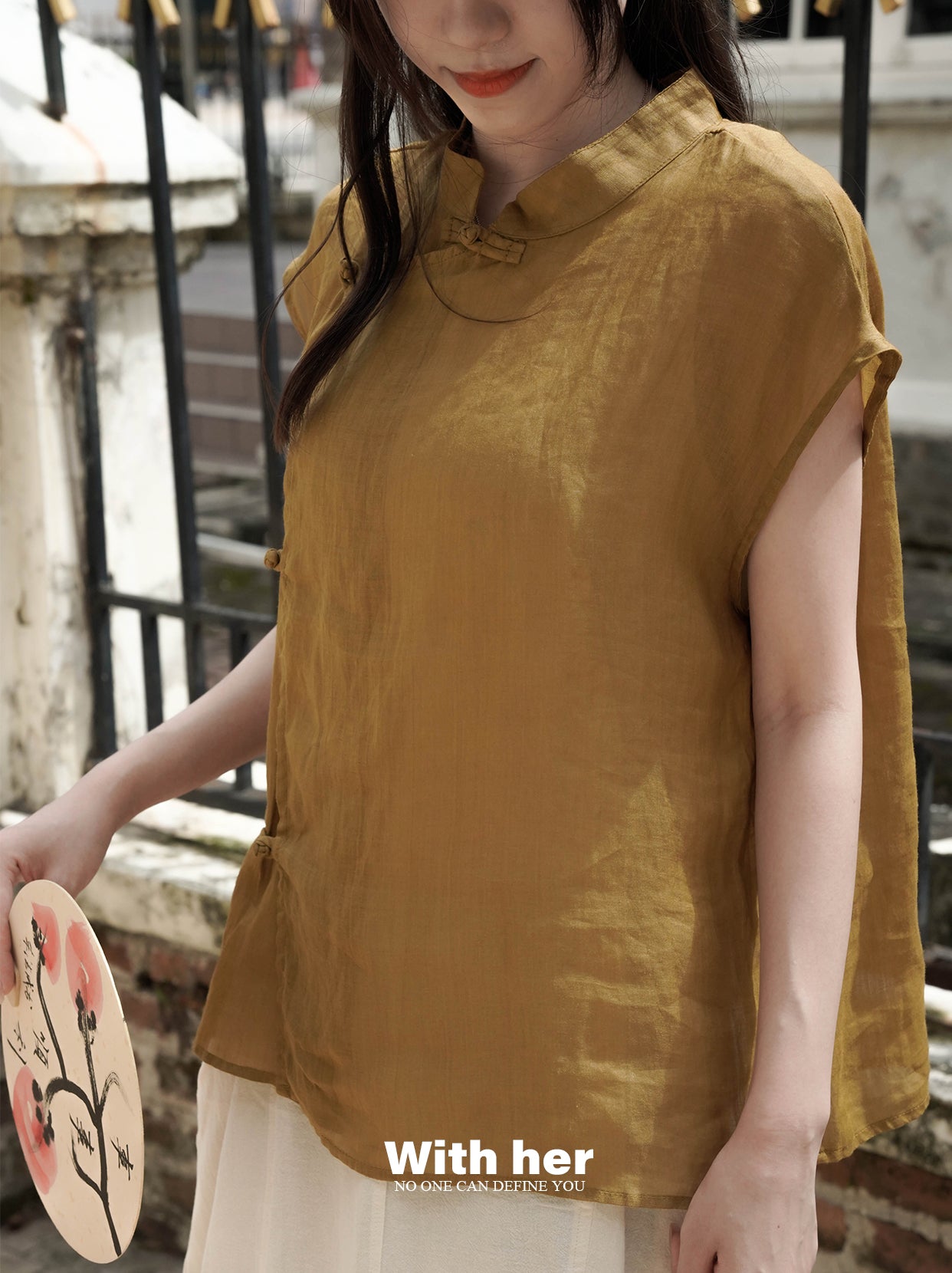 Designed: Mandarin Collar / Slightly Sheer / Sleeveless