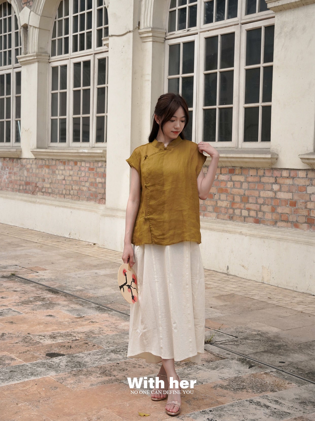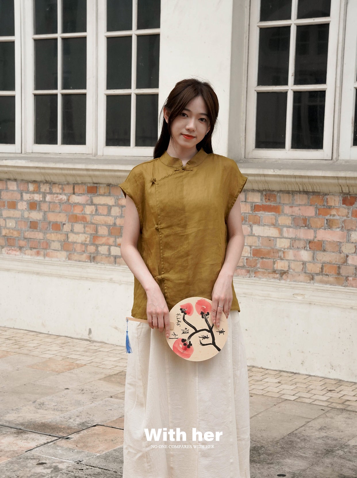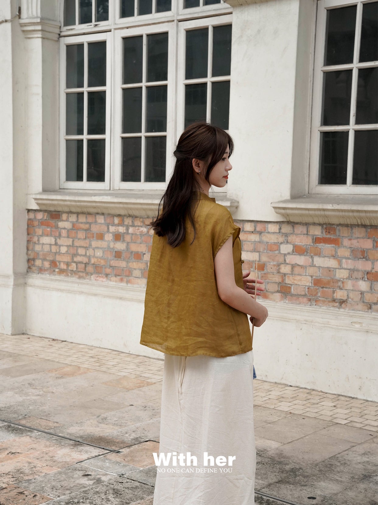 Designed: Mandarin Collar / Slightly Sheer / Sleeveless