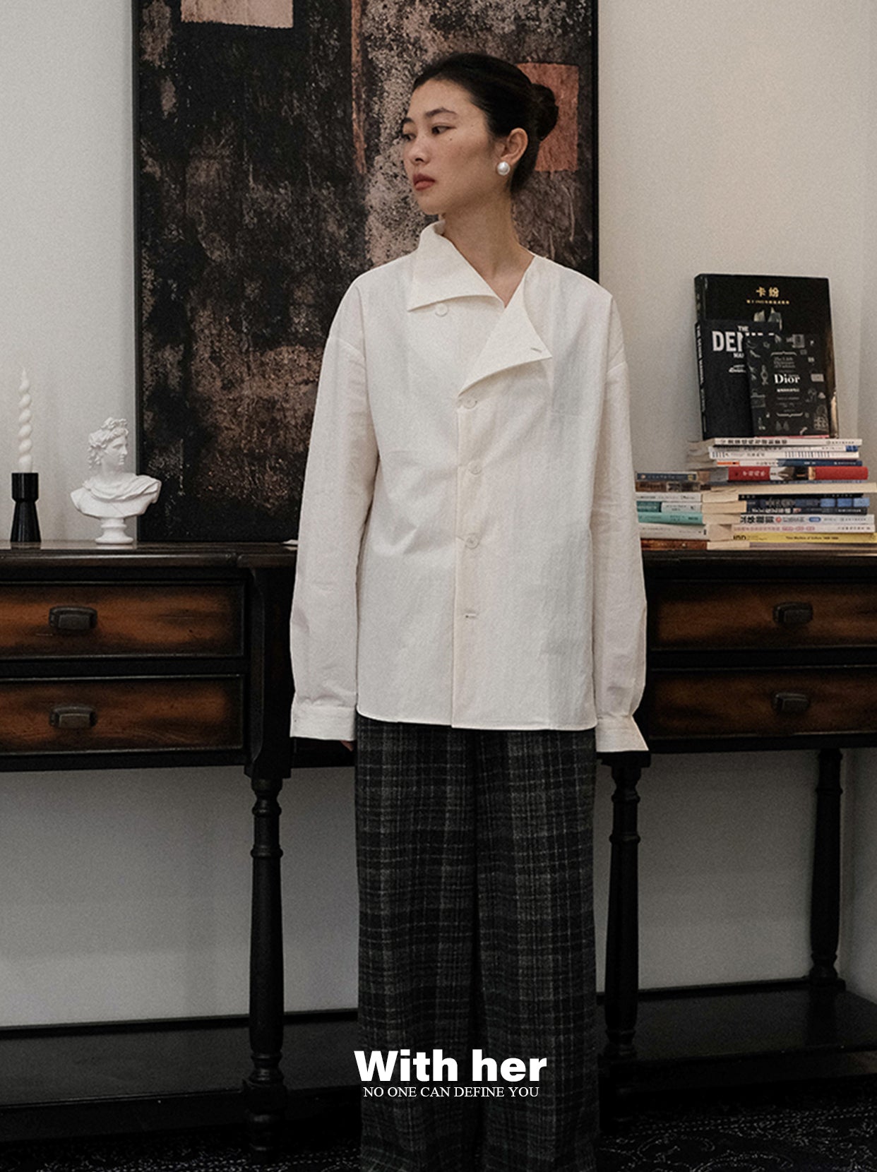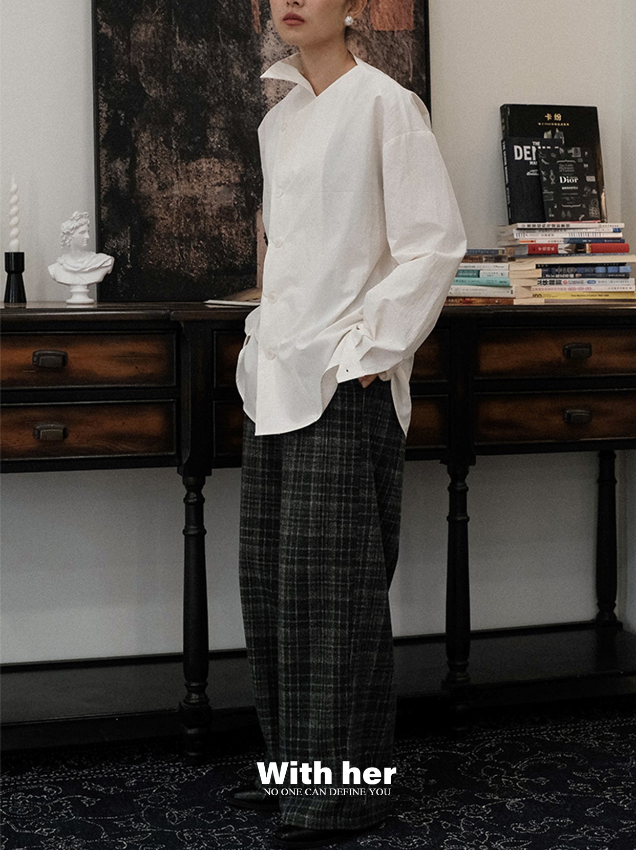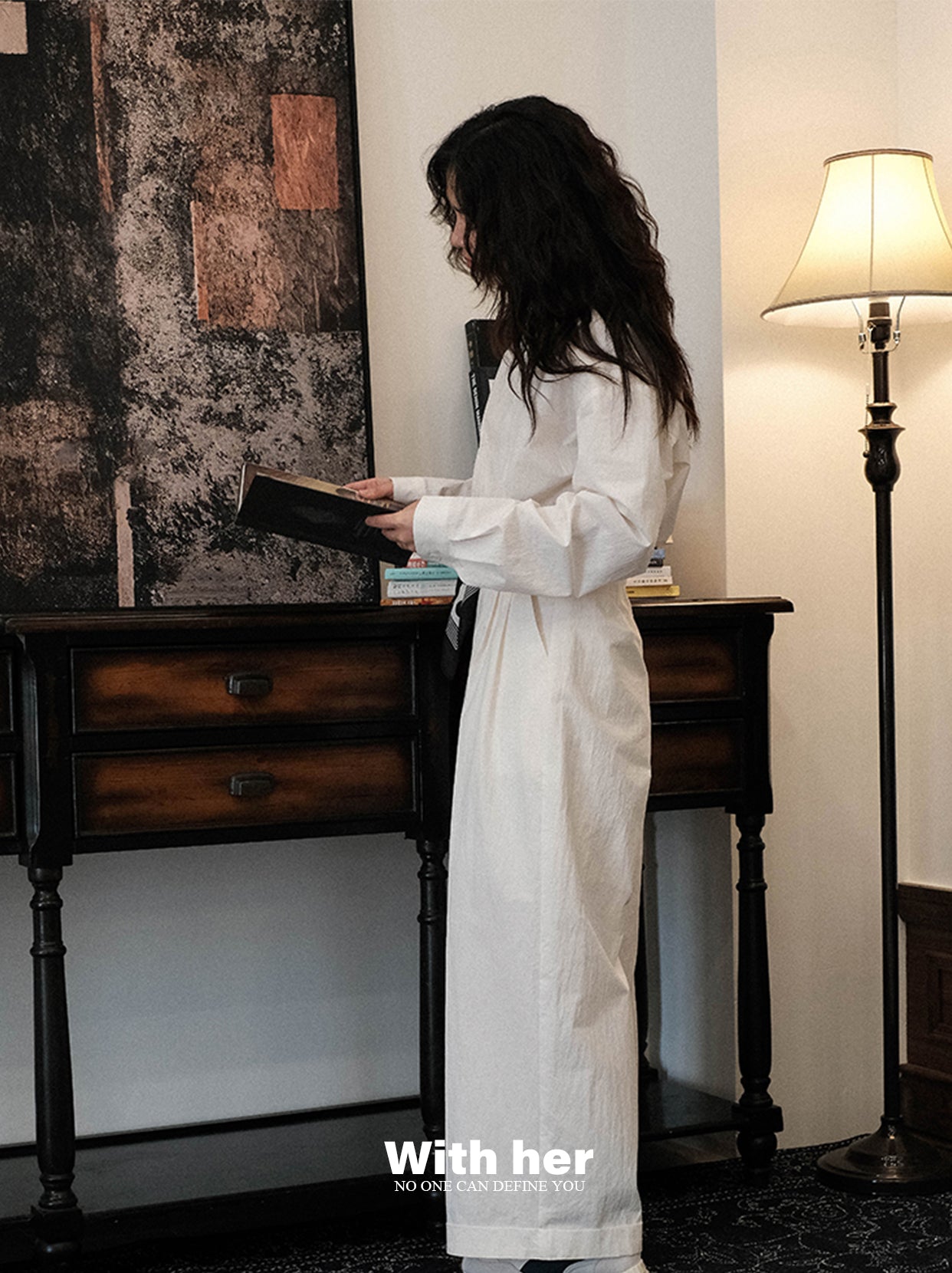 刚好在夕阳的剪影下,设计出的一款衬衣。选用了带点斑驳肌理感的棉锦面料,上身骨感有型,质感独特,整体版型宽松而不宽大,随性自然。
