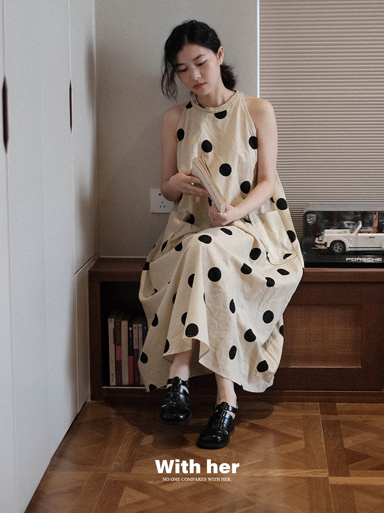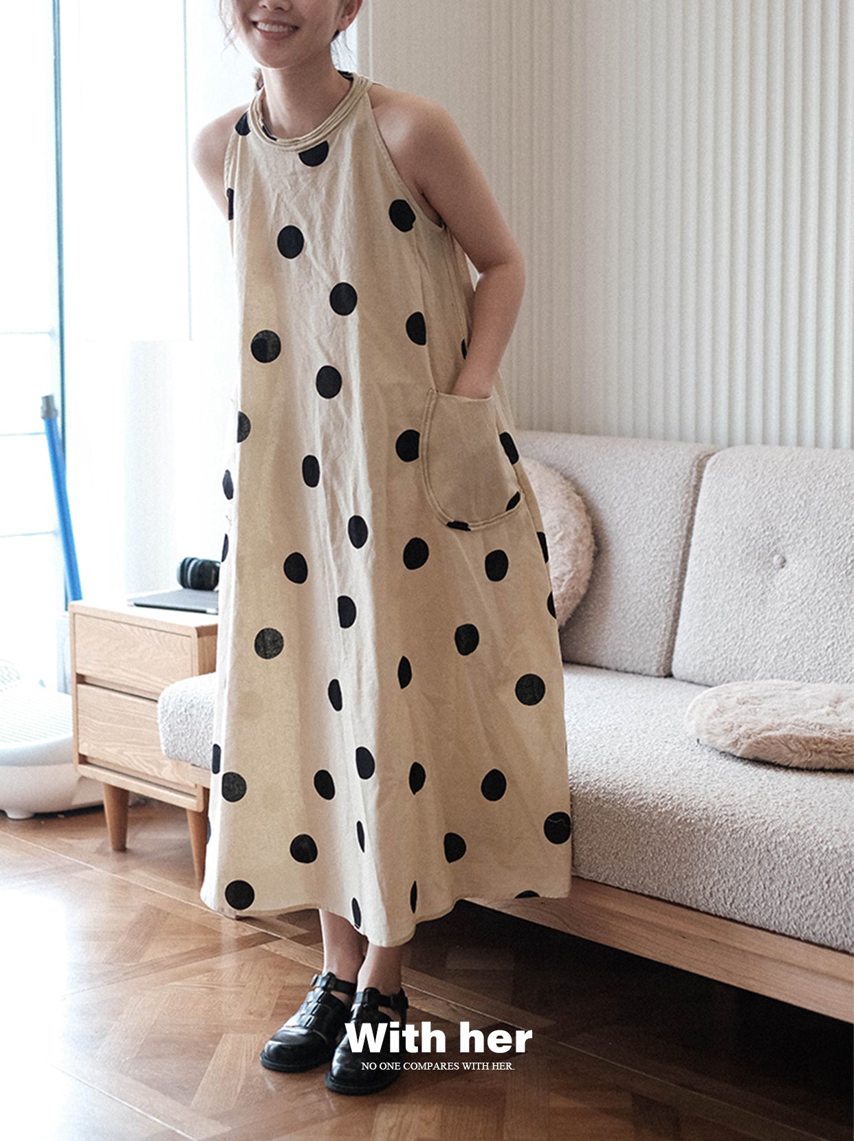 Original Designed : Side pockets / Halterneck Polka Dot design /